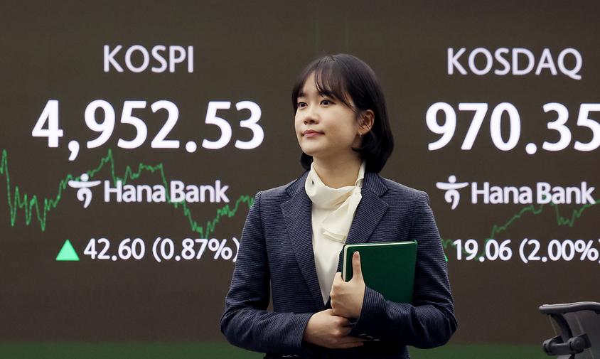 코스피가 기관 매수세에 힘입어 5000선 안착에 시도했지만 4990선에서 마감했다. 코스닥은 기관과 외국인이 순매수세에 2.4%대 상승하며 '천스닥(코스닥 1000)'을 눈앞에 두고 있다. 23일 한국거래소에 따르면 이날 코스피는 전일 대비 37.54p(0.76%) 오른 4990.07에 거래를 마쳤다. 이날 지수는 장중 5021.13(1.39%)까지 오르며 5000선 안착을 시도했지만 상승폭을 줄였다. 유가증권시장에서는 외국인과 기관이 각각 1345억원, 4912억원을 사들였고 개인이 7255억원을 순매도했다. 업종별로는 증권(9.28%), IT서비스(4.04%), 건설(3.25%) 등이 강세였고 전기/가스(-6.33%), 운송/창고(-1.58%), 운송장비/부품(-1.17%) 등이 약세였다. 시가총액 상위 종목에서는 NAVER가 8.15% 상승하며 초강세를 보였다. 이날 NAVER의 급등은 원화 스테이블코인 법제화에 대한 기대감이 영향을 미친 것으로 풀이된다. 전날 코스피5000 틀별위원회 오찬자리에서 민병덕 더불어민주당 의원이 디지털자산을 언급한 바 있다. 이 밖에도 두산에너빌리티(3.89%), 삼성물산(2.69%), 셀트리온(2.16%)가 오름세를 보였다. 반면 현대차(-3.405), 기아(-3.40%), 한화에어로스페이스(-2.48%) 등은 내림세를 보였다. 대형 반도체 투톱의 등락은 엇갈렸다. 삼성전자는 0.39% 하락, SK하이닉스는 1.06% 상승 마감했다. 이날 코스닥은 전 거래일 대비 23.58p(2.43%) 오른 993.93에 거래를 마쳤다. 기관과 외국인이 각각 9895억원, 928억원을 순매수했고 개인이 1조379억원을 순매도했다. 임정은 KB증권 연구원은 "코스피 5000 돌파 후 자동차, 반도체 외국인 매물이 출회됐다"며 "'코스닥 3000 목표' 언급에 바이오를 중심으로 반등하며 코스닥이 1000p에 근접했다"고 설명했다. koreanbae@fnnews.com 배한글 기자