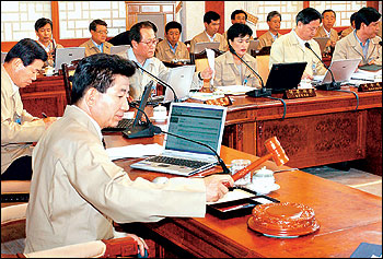 노무현 대통령이 18일 오전 청와대에서 을지국무회의를 주재하고 있다.
