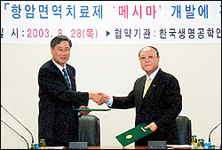 한국생명공학연구원은 과학기술부 선도기술개발사업(G-7)의 지원을 받아 개발한 항암면역치료제 ‘메시마’ 관련 기술을 국내 제약업체에 이전했다고 1일 밝혔다.