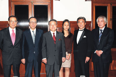 금호문화재단은 일본 도쿄 HNK홀에서 뉴욕 필하모닉과 피아니스트 손열음양의 협연 연주회가 열렸다고 22일 밝혔다. 연주회에 앞서 박성용 금호문화재단 이사장(왼쪽부터)과 후쿠다 야스오 전 관방장관, 라종일 주일 대사, 피아니스트 손열음, 나카소네 히로후미 참의원 의원, 스즈키 코이치 IIJ 회장이 포즈를 취하고 있다.