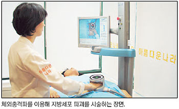 지방흡입수술을 하지 않고도 지방세포를 줄일 수 있는 비만 치료법이 국내에 도입됐다. 이 치료법은 체내 요로결석 등을 치료하는데 사용되는 초음파인 ‘체외충격파’를 이용해 지방세포를 파괴하는 ‘체외충격파 지방세포파괴술’이다.