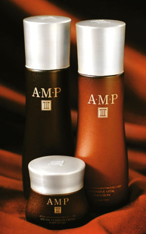 A.M.P Ⅲ의 구성은 스킨 소프너, 에멀전, 크림, 에센스 총 4종류. 하이 모이스처라이징 스킨 소프너는 최적의 촉촉함과 부드러움을 남겨주고, 인텐시브 바이탈 에멀전은 빠르게 흡수되면서 탄력있게 가꿔준다. 스페셜 컴플리트 크림과 인텐시브 뉴트리션 에센스는 영양 성분을 집중 보충해준다.
