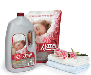 LG생활건강이 최근 출시한 섬유유연제 ‘샤프란 로즈부케’는 불투명한 은색 바탕에 강렬한 자주색 라벨이 붙어 있는 제품으로 주부들의 시선을 사로잡고 있다. 그동안 섬유유연제는 순하고 부드러운 느낌을 주기 위해 화사한 색감을 사용, 투명한 용기에 내용물 색상이 비치는 파스텔톤 일색이었다.