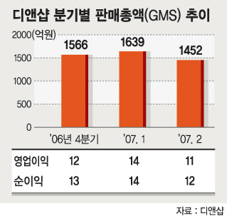 디앤샵은 지난해 3·4분기 당시 1449억원의 판매총액(GSM)을 기록했다. 영업이익과 당기순이익은 각각 25억원과 24억원. 그후 4·4분기에는 판매총액이 전 분기보다 소폭 상승한 1566억원을 기록했지만 영업이익과 당기순이익은 각각 14억원과 13억원으로 전분기보다 오히려 하락했다.