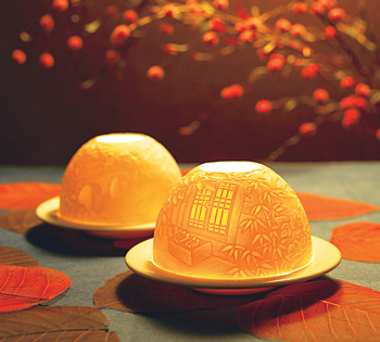 이 제품은 일반적으로 쓰이는 유리가 아니라 본차이나를 이용해 불빛을 은은하게 발산한다. 또 겉면을 창호지문과 대나무가 어우러진 시골 풍경으로 조각해 고풍스런 느낌까지 준다.