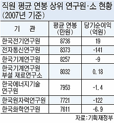 아울러 지난해 1800만원의 순이익을 남긴 기계연구원 부설 재료연구소 직원들도 평균 8032만원의 연봉을 가져갔다.