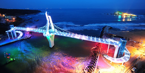 | ▲ 울산 울주군 서생면 진하해수욕장 앞바다에 들어선 명선교가 화려한 조명을 뽐내고 있다. |