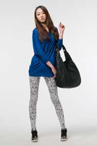 여성 캐주얼 브랜드 쿠아의 김은정 디자인 실장은 “올해에는 빈티지 데님, 레이스, 아프리카 패턴 등 다양한 소재와 무늬를 적용한 레깅스가 강세”라면서 “각선미에 자신이 없더라도 롱 티셔츠나 짧은 원피스를 코디하면 얼마든지 멋스럽게 연출할 수 있다”고 설명했다.