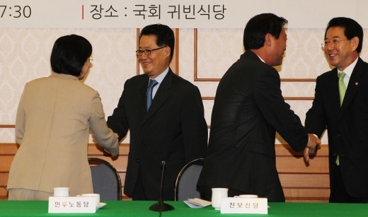 민주당, 자유선진당, 민주노동당, 창조한국당, 진보신당 등 야 5당 대표는 13일 국회 귀빈식당에서 회담을 갖고 4대강 사업 검증특위 구성을 위해 공동 노력하기로 했다.