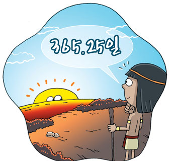 1년의 길이를 가장 먼저 알게 된 이들은 고대 이집트 사람들입니다. 이들은 시리우스라는 별과 태양을 오랜 세월 동안 관찰했습니다. 그 결과 태양과 시리우스의 움직임이 365일마다 똑같이 되풀이된다는 것을 알게 됐습니다. 그리고 365일을 1년으로 계산해 만든 달력, '태양력'은 지금부터 6000년 전에 탄생하게 됐습니다.