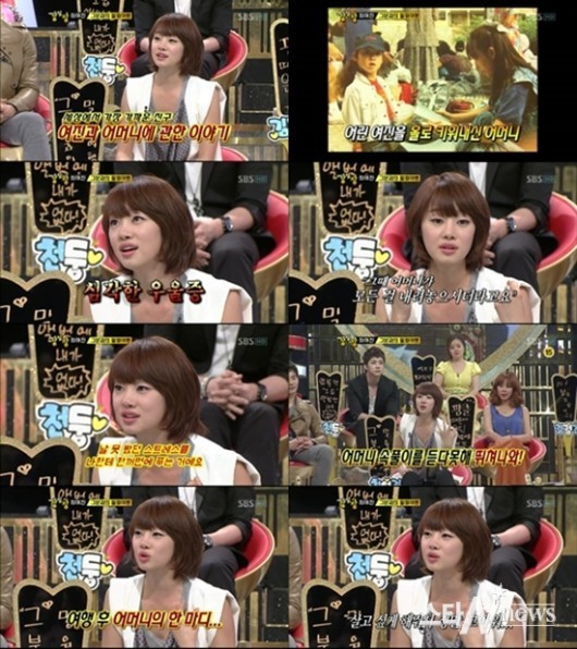 10일 방송된 SBS ‘강심장’에서 최여진이 부잣집 딸일 것 같은 이미지와는 달리, 힘들었던 이민생활과 우울증을 겪던 어머니와의 과거사를 고백하며 시청자들의 가슴을 짠하게 만들었다.
