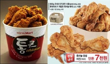 | ▲ 지난해 12월 ‘5천원’에 판매됐다 중단된 ‘통큰치킨’(좌)과 ‘제2의 통큰치킨’이 아니냐며 논란이 된 ‘흑마늘 양념치킨’(우). |