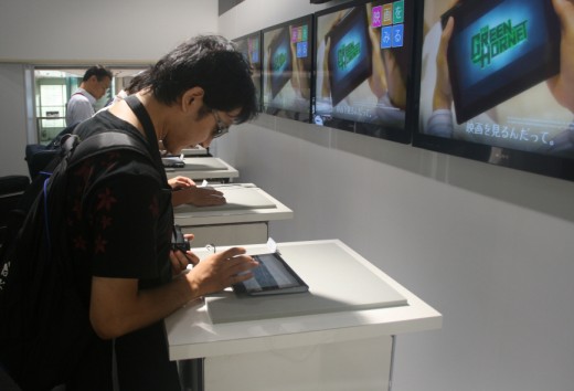 소니는 최근 도쿄 긴자의 소니스토어를 비롯한 매장에 태블릿PC 제품들을 전시했다. 16일 현지에서 소비자들은 아침 일찍부터 매장을 찾아 제품을 사용해보면서 관심을 보이고 있다.