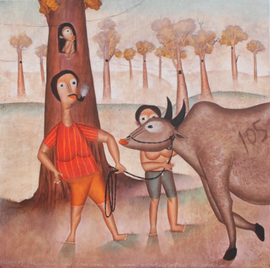 작가는 자신이 나고 자란 곳이 지상 최고의 낙원이라고 생각하며 살아가는 발리 사람들의 생생한 표정을 단순화하고 캐릭터화해 특징적으로 표현한다. 그림 속 사람들은 작품을 위한 특별한 주제의식을 담지 않고 그들의 삶을 그대로 영위하고 있다.