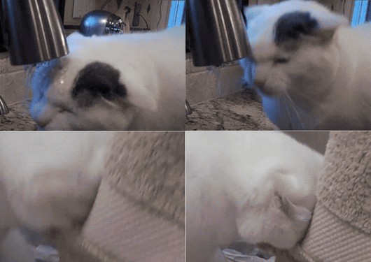 더욱이 이 고양이는 세수가 끝난 후 수건을 이용해 물기를 닦아내 사람 못지않은 청결함을 과시하고 있다.