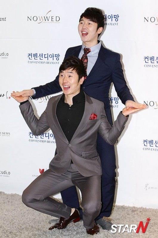 이날 홍록기의 결혼식 하객으로 참석한 개그맨 이상호-이상민 형제가 포토타임을 갖고 있다.