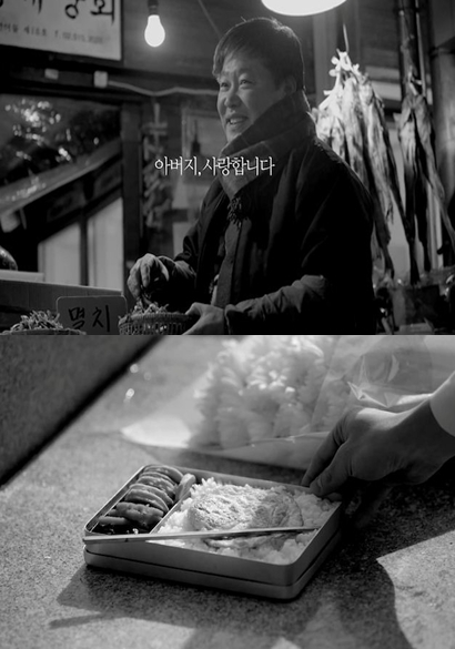 이 사연을 바탕으로 제작된 삼성생명의 ‘아버지와 도시락’ 영상은 가족을 위해 모든걸 희생하고 살아온 아버지의 큰 사랑을 감동적으로 표현했다. 추운 날씨에도 열심히 일하는 아버지의 모습을 담기 위해 영하 13도를 넘나드는 추위 속에서 촬영이 진행했다. 영상의 진정성을 위해 실제 건어물 시장을 운영하는 상인이 아버지 역할을 소화했다. 특히 배경음악으로 인순이의 ‘아버지’가 흐르며 감동을 더욱 배가시킨다는 평이다.