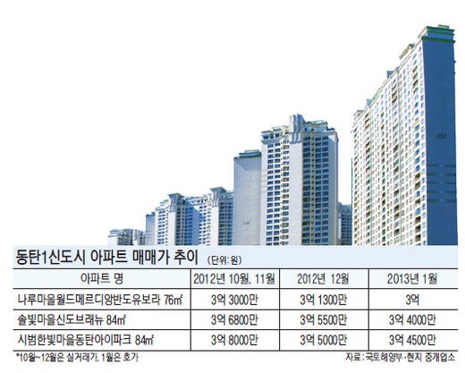 반송동 K공인 관계자는 "3개월 전보다 3000만원이나 하락해도 거래는 많지 않은 편"이라면서 "기존시세와 비슷한 수준에서 신규 아파트가 대규모로 쏟아져 오래된 아파트를 사려는 사람이 없기 때문"이라고 말했다.