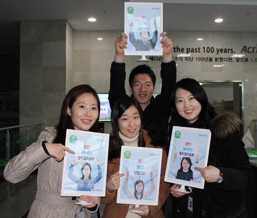 경기도 안산스마트허브에 위치한 서울반도체 신입사원들이 회사의 특허경쟁력을 지키기 위해 자신들이 직접 모델로 참여한 '보안캠페인' 포스터를 들고 포즈를 취하고 있다.