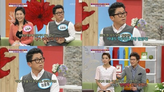 앞서 최홍림의 아내 도경숙 씨는 지난 1월 ‘여유만만’에 출연해 부동산을 다 팔아 빚잔치를 했고 아직도 원금을 갚아나가는 중이라고 밝혀 화제가 된바 있다.