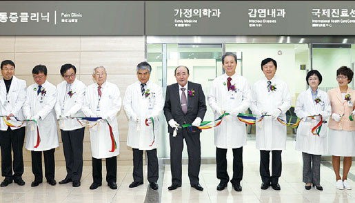 인제대학교 해운대백병원(원장 황태규)은 지난 20일 부산 좌동의 병원 지하 1층에서 학교법인 인제학원 백낙환 이사장(오른쪽 다섯번째) 등이 참석한 가운데 국제진료센터, 통증클리닉, 가정의학과, 감염내과 확장 이전 기념행사를 가졌다.