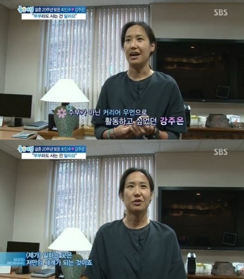 4일 오전 방송된 SBS ‘좋은아침’에서 최민수의 아내 강주은 씨는 사회생활을 시작하게 된 계기와 함께 제2의 인생을 열었음을 밝혔다.