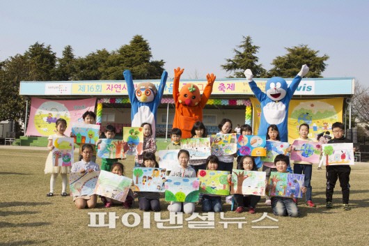 1만여 명이 참가한 이번 행사에서는 '우리가 만드는 아름다운 지구별'이라는 주제로 초등학생들은 그림 그리기, 중학생들은 글짓기를 통해 자연 사랑의 마음을 원고지와 도화지에 담았다.