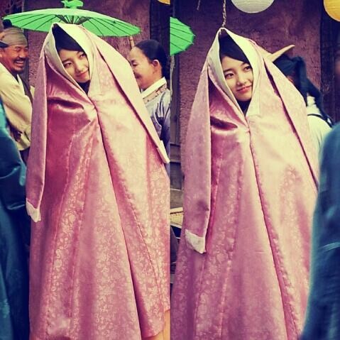 공개된 사진 속 수지는 MBC 월화드라마 ‘구가의 서’ 촬영 중 저자에서 최강치(이승기 분)를 기다리는 장면을 촬영하기 위해 장옷을 뒤집어쓴 모습을 하고 있다.