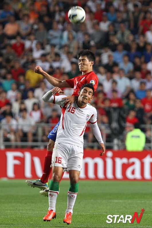 한국과 이란의 2014브라질월드컵 아시아지역 최종예선 A조 최종전이 18일 오후 울산문수축구경기장에서 열린 가운데 김기희 선수가 헤딩을 시도하고 있다.