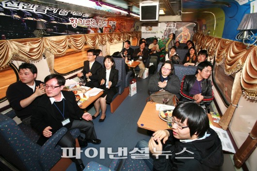 코레일 부산경남본부는 다음달 울산과 경남 청도, 전남 순천·경남 하동 등으로 여행하는 와인·시네마열차를 7회에 걸쳐 운행한다. 젊은이들이 와인시네마열차는 타고 추억어린 여행을 즐기는 모습.