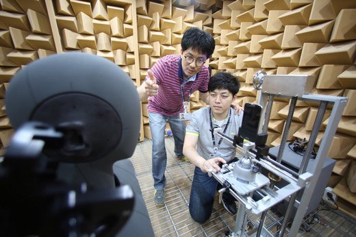 수원 '삼성 디지털 시티'에 위치한 모바일 연구소(R5) 내 오디오 특수실험실 '어쿠스틱 랩'에서 삼성전자 연구원들이 '갤럭시 S4' 음향 테스트를 실시하고 있다.