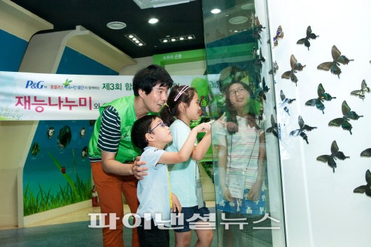 홈플러스와 한국P&G는 지난달 30일 공동 사회공헌프로그램 '함께 만드는 내일' 캠페인의 일환으로 전국 지역아동센터 어린이 800여 명의 문화체험행사를 진행했다. 올해로 3회째를 맞은 이번 캠페인은 양사 임직원들이 자원봉사자로 참여해 지역아동센터 어린이의 문화체험을 지원한다. 경기 양평 곤충박물관에서 홈플러스 및 한국P&G 임직원 자원봉사자들이 예빛 지역아동센터 어린이들과 함께 곤충전시회를 관람하고 있다.