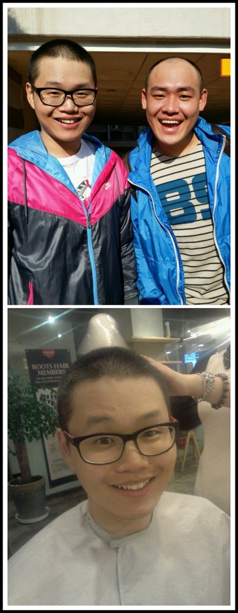 삭발을 막 마치고 짧아진 머리를 말리고 있는 최효종의 환한 미소가 시선을 사로잡는다.
