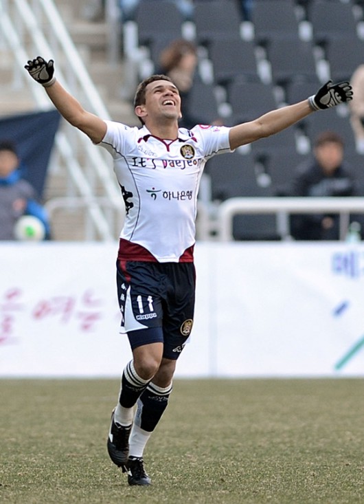 대전은 20일 오후 3시 제주월드컵경기장에서 열린 ‘현대오일뱅크 K리그 클래식 2013’ 제주와의 경기에서 행운의 자책골에 힘입어 1-0으로 승리를 거뒀다.