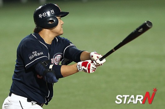 '2013 한국야쿠르트 세븐프로야구' 삼성 라이온즈와 두산 베어스의 한국시리즈 6차전 경기가 31일 오후 대구구장에서 열린 가운데 두산 오재일이 3회초 무사 1루 상황 2루타를 치고 있다.