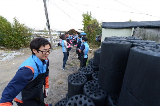 한국가스공사 임직원들이 에너지 빈곤층 해소를 위한 봉사활동의 일환으로 취약계층을 위한 연탄배달에 나서고 있다.