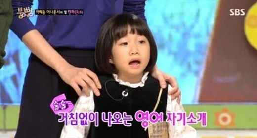 SBS 이혜승 아나운서의 딸이자 영어 박사 민병철 교수의 손녀인 민하린은 23일 방송된 SBS '스타주니어쇼-붕어빵'(이하 붕어빵)에 출연, 영어로 능숙하게 자기소개를 했다.