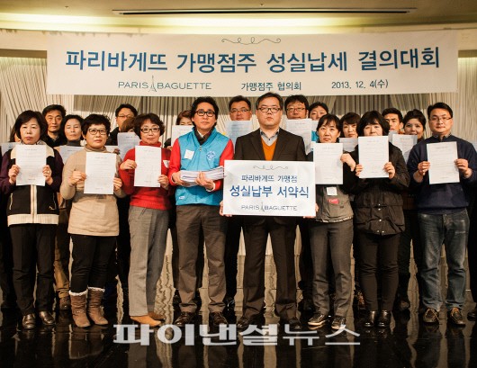 최근 프랜차이즈 가맹점의 부가가치세 추가 과세 논란이 일고 있는 가운데 파리바게뜨 가맹점주들이 '성실납부 서약식'을 열었다.