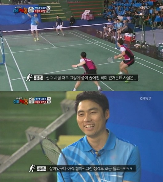 지난 14일 방송된 KBS 2TV ‘우리동네 예체능’(이하 ‘예체능’)에서 강호동과 닉쿤, 찬성, 이동수, 박주봉, 김동문과 최강창민, 존박, 이만기, 하태권, 이용대, 유연성은 ‘배드민턴 리턴즈-올스타 슈퍼매치’를 펼쳤다.