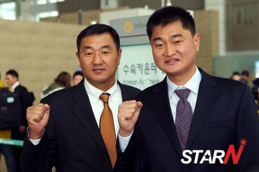이날 손민한, 박명환이 포즈를 취하고 있다.