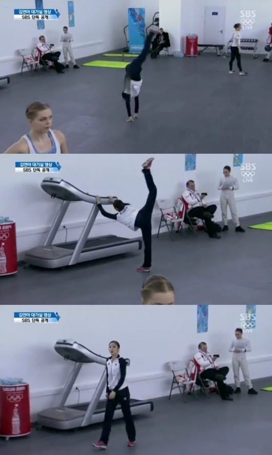 이날 김연아의 경기에 앞서 중계에 나선 SBS에서는 현지에서 촬영한 김연아의 몸풀기 영상을 공개해 눈길을 끌었다.