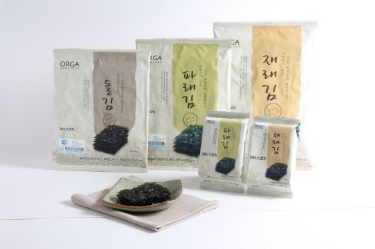 이번에 출시한 '올가 조미김'은 총 3종으로 '올가 재래김(전장 7매·2200원, 도시락김 3봉·1700원, 도시락김 12봉·5900원)', '올가 파래김(전장 7매·1800원, 도시락김 3봉·1500원, 도시락김 12봉·5400원)', '올가 돌김(전장 7매·2300원)'이다. '올가 조미김'은 청정 해역인 전라남도 해남에서 자란 친환경 원초(바다에서 자라나 가공되기 전까지의 김 원재료)를 무산 처리해 만든 안전한 제품이다. 또한 수산물 이력제를 적용해 생산에서부터 가공, 유통까지 이력 추적이 가능해 안심하고 먹을 수 있다.