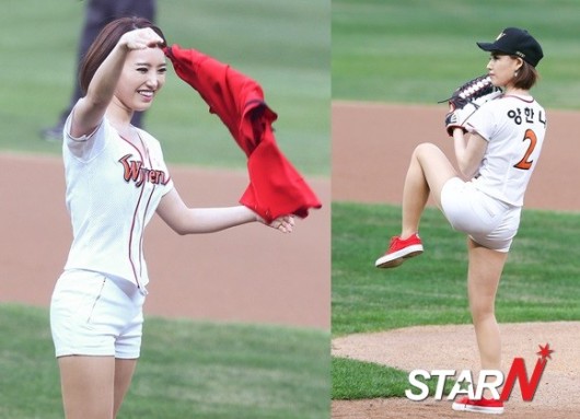 19일 양한나 아나운서는 19일 인천 문학경기장에서 열린 한국야쿠르트 세븐 프로야구 SK 와이번스와 삼성 라이온즈의 경기에 시구자로 등장했다.
