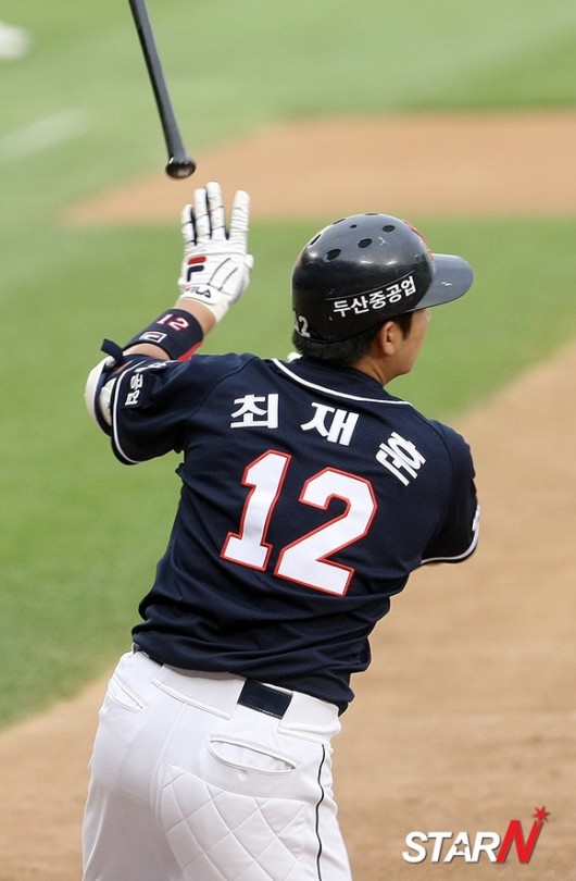 '2014 한국야쿠르트 세븐 프로야구' LG 트윈스와 두산 베어스의 경기가 8일 오후 잠실구장에서 열린 가운데 2회초 2사 1루상황 두산 최재훈이 1타점 적시타를 치고 있다.