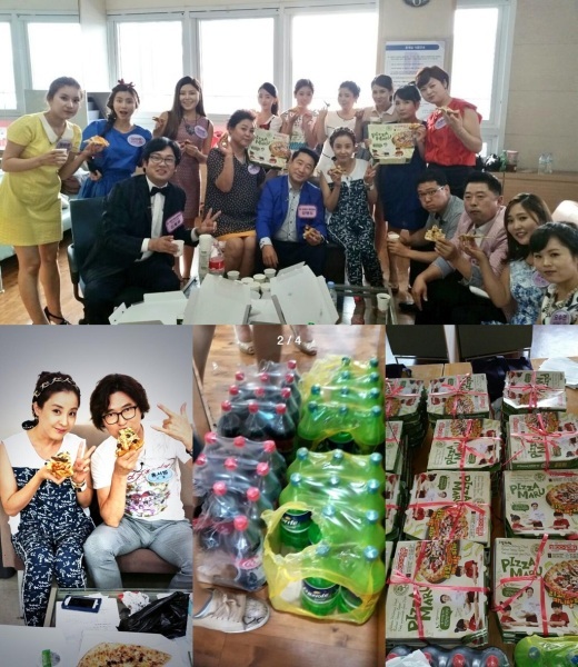 박은혜는 트위터를 통해 "엄청난 피자들!피자광고 촬영 기념으로... 며칠 전 이제 만나러 갑니다 녹화 날 피자 40판을 쐈어여~~ 우리 이만갑 미남미녀분들 다들 너무 즐거워하셔서 저도 기뻤답니다. 좋은 분위기에 시청률도 쑥쑥!"이라는 글과 함께 4장의 사진을 올렸다.
