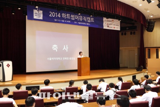 전혜정 서울여대 총장이 하트하트재단의 '하트썸머뮤직캠프' 개회식에서 축사를 하고 있다.