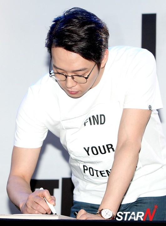 그룹 JYJ 유천이 11일 오후 서울 영등포구 여의도동 IFC몰에서 열린 정규 2집 'JUST US' 발매 기념 팬사인회에 참석해 앨범에 사인을 하고 있다.