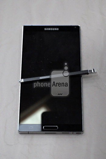 사진 속 기기는 그동안 출시된 노트 시리즈보다 각진 디자인이 특징이다. 후면 커버는 가죽과 유사한 느낌으로 처리했고 메탈 테두리가 적용된 것으로 보인다. 조만간 출시될 '갤럭시 알파'도 옆면 테두리를 메탈로 처리한 것으로 전해졌다. S펜 또한 전작보다 각진 디자인을 채용한 것으로 보인다.