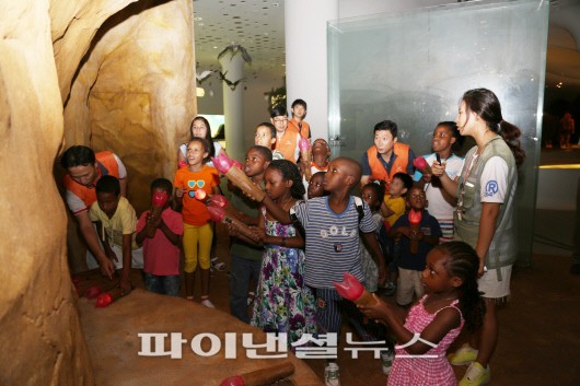 이날 초청된 어린이들은 미국, 러시아, 리비아, 필리핀 등의 국적을 갖고 난민 상태로 어렵게 생활하는 16가족 23명이다. 이들은 한화손해보험 법인영업부문 봉사단과 함께 20일 경기도 연천군 전곡선사박물관을 관람하고 선사 예술조각품 만들기 체험활동을 벌였다.