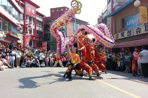 인천 중국 문화관광 페스티벌이 오는 10월 3∼5일까지 3일간 중구 자유공원과 차이나타운 일원에서 개최된다. 이번 페스티벌에는 중국 관광객과 시민들이 즐길 수 있도록 다양한 프로그램을 선보인다. 차이나타운에서 중국 전통공연인 용춤이 공연되고 있다.